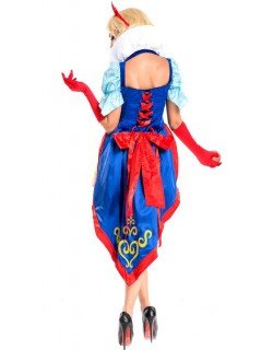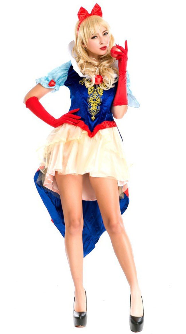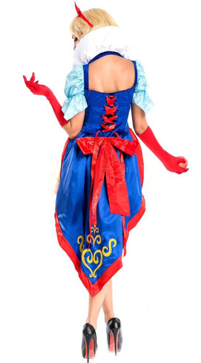 Dette fortryllende snehvide kostume indeholder en fløjlkorsetkjole med glitter lurex filigree applique og rosette accenter, broderet blonde underjakke nederdel med sequin og perle detaljer, organza puff ærmer, foret satin trimmet aftageligt tog med satin bue og guld rulle detaljer og matchende bue hovedstykke .