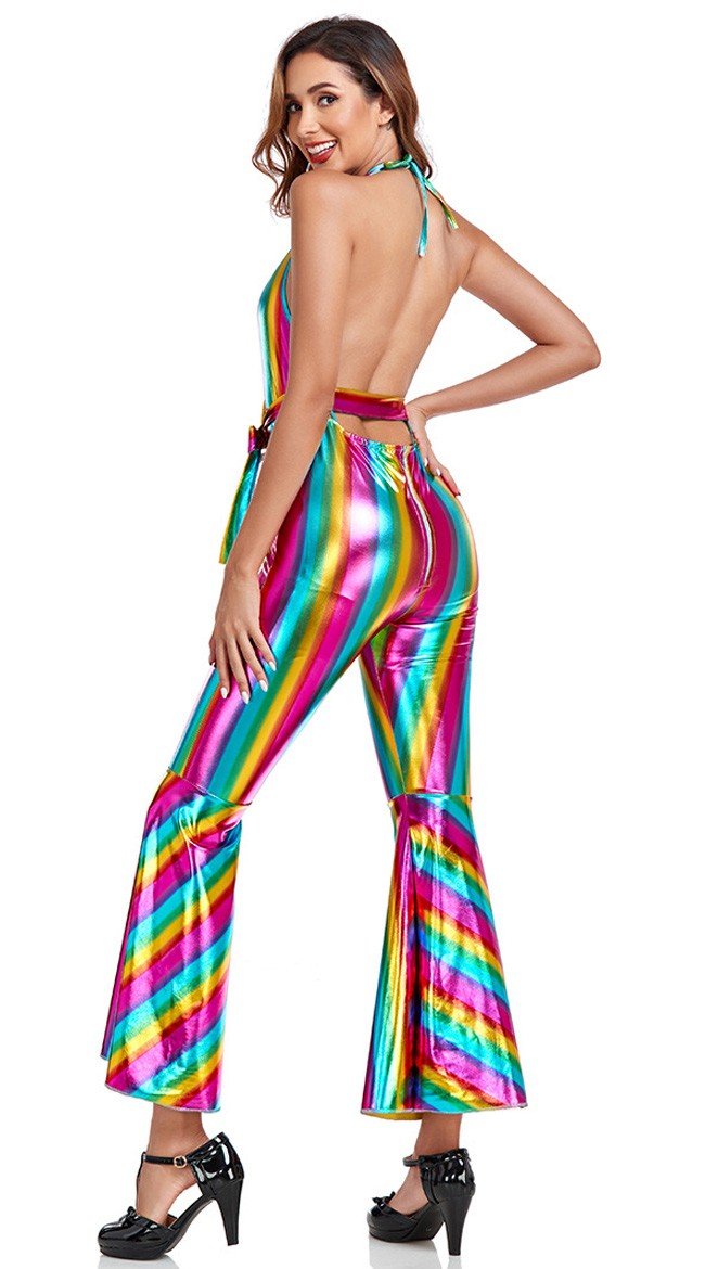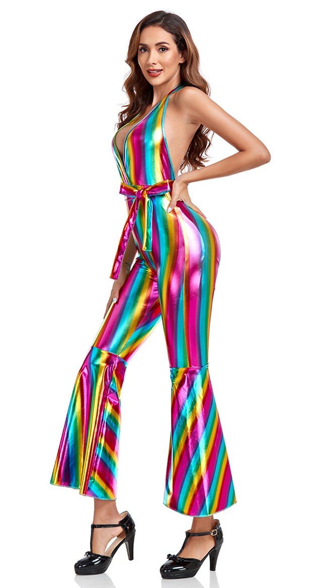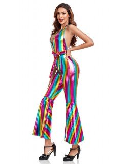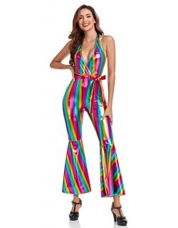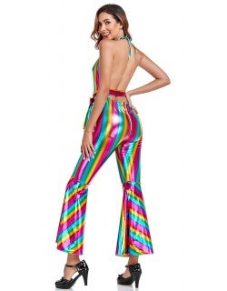 Dame 70'Er Disco Kostume Voksne Dancing Queen Kostume Regnbue Rave Dyb-V Hals Hippie Kostumer