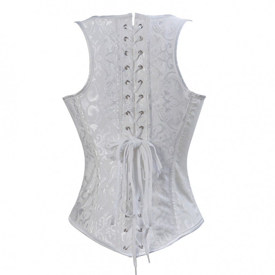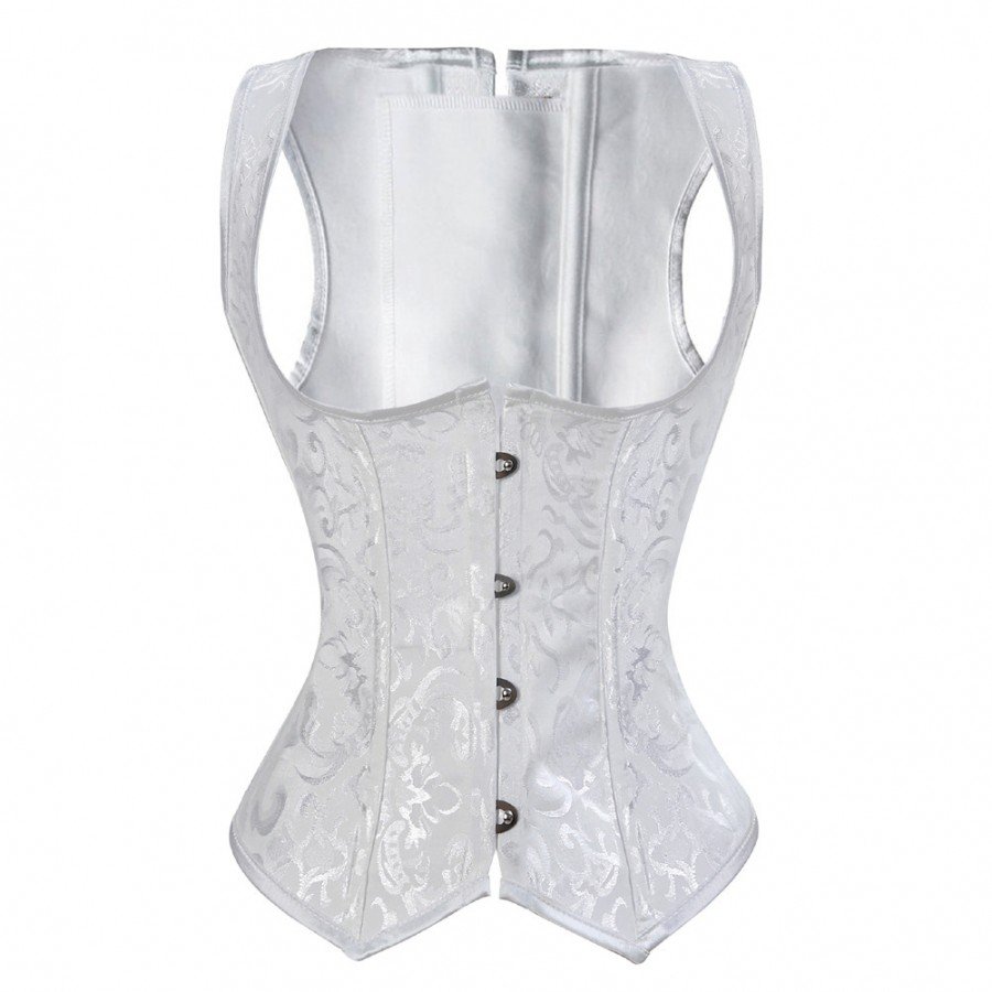 Mønstret Underbust Korset Hvid Victoriansk Corsage Talje Træner Vest 4 Stålspænde